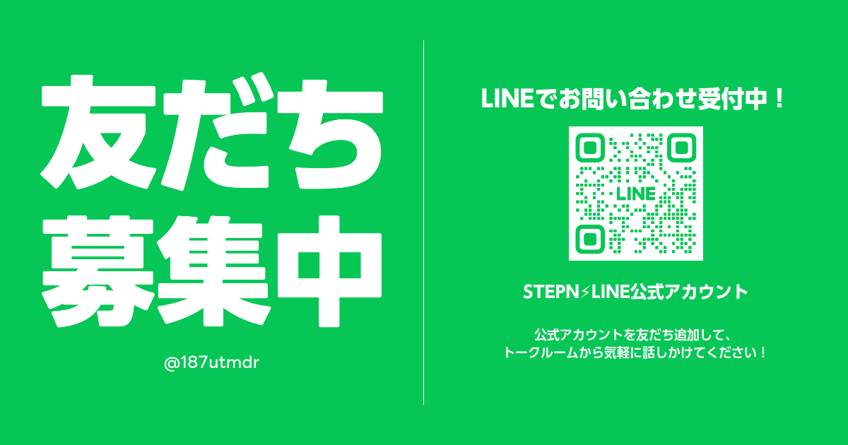 ↓下のリンクがSTEPNの公式LINEアカウントなので友だち登録しておきましょう。